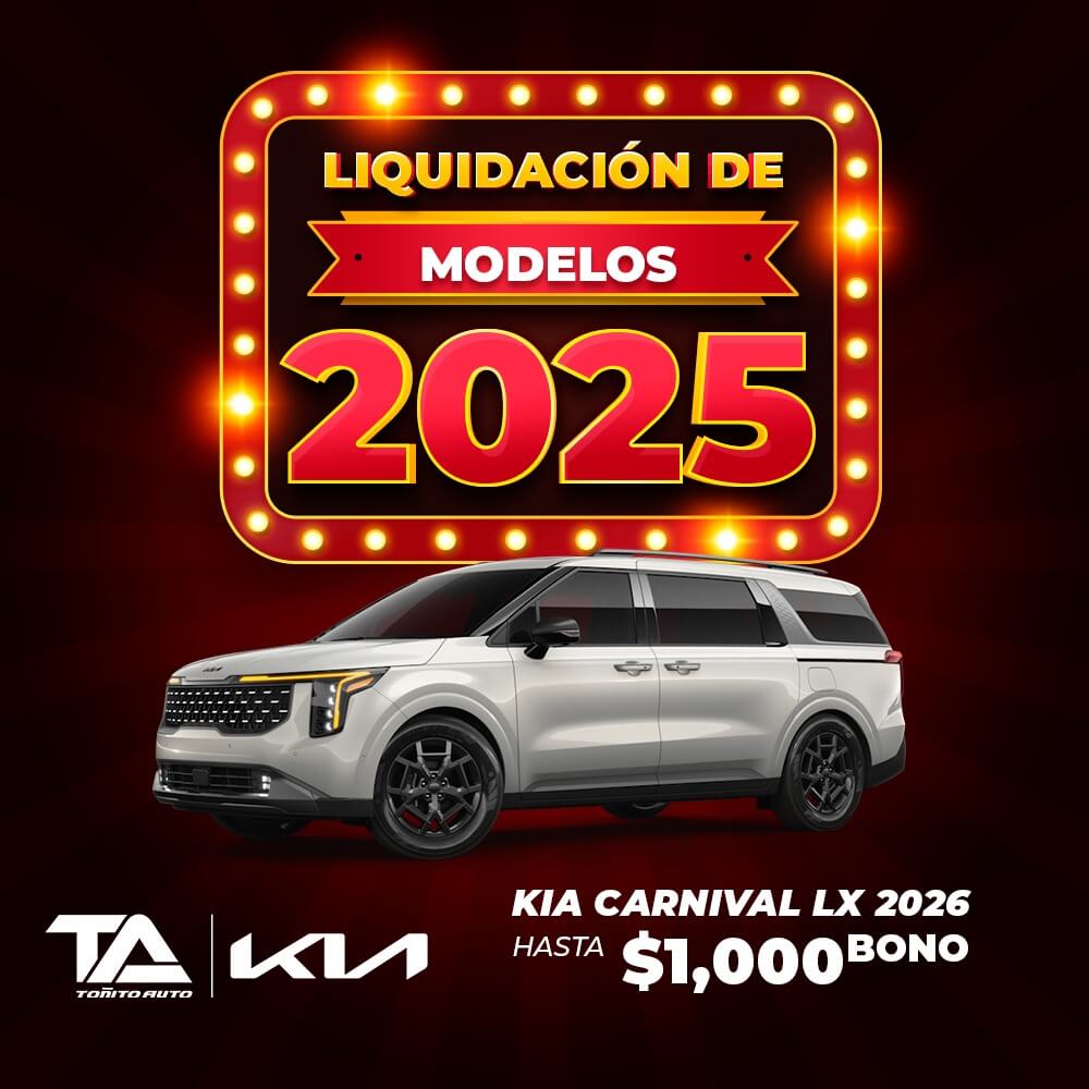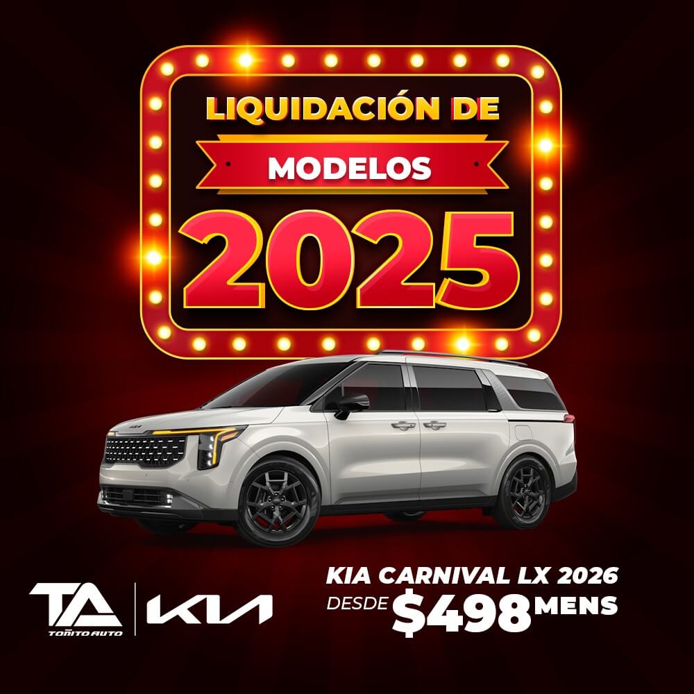 [6] Carnival LX 2025: Pagos desde $498.00. Precio desde $52,995 – $16,500 pronto = $36,495 balance a financiar al 3.95% APR, 84 meses, FICO 750+ con Oriental. T6563833