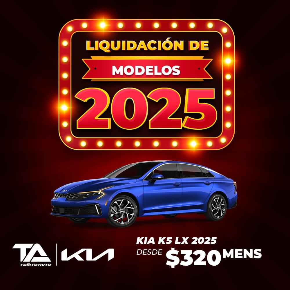 [1] K5 LX 2025: Pagos desde $320.61. Precio desde $35,995 – $12,500 pronto = $23,495 balance a financiar al 3.95% APR, 84 meses, FICO 750+ con Oriental. S5362964