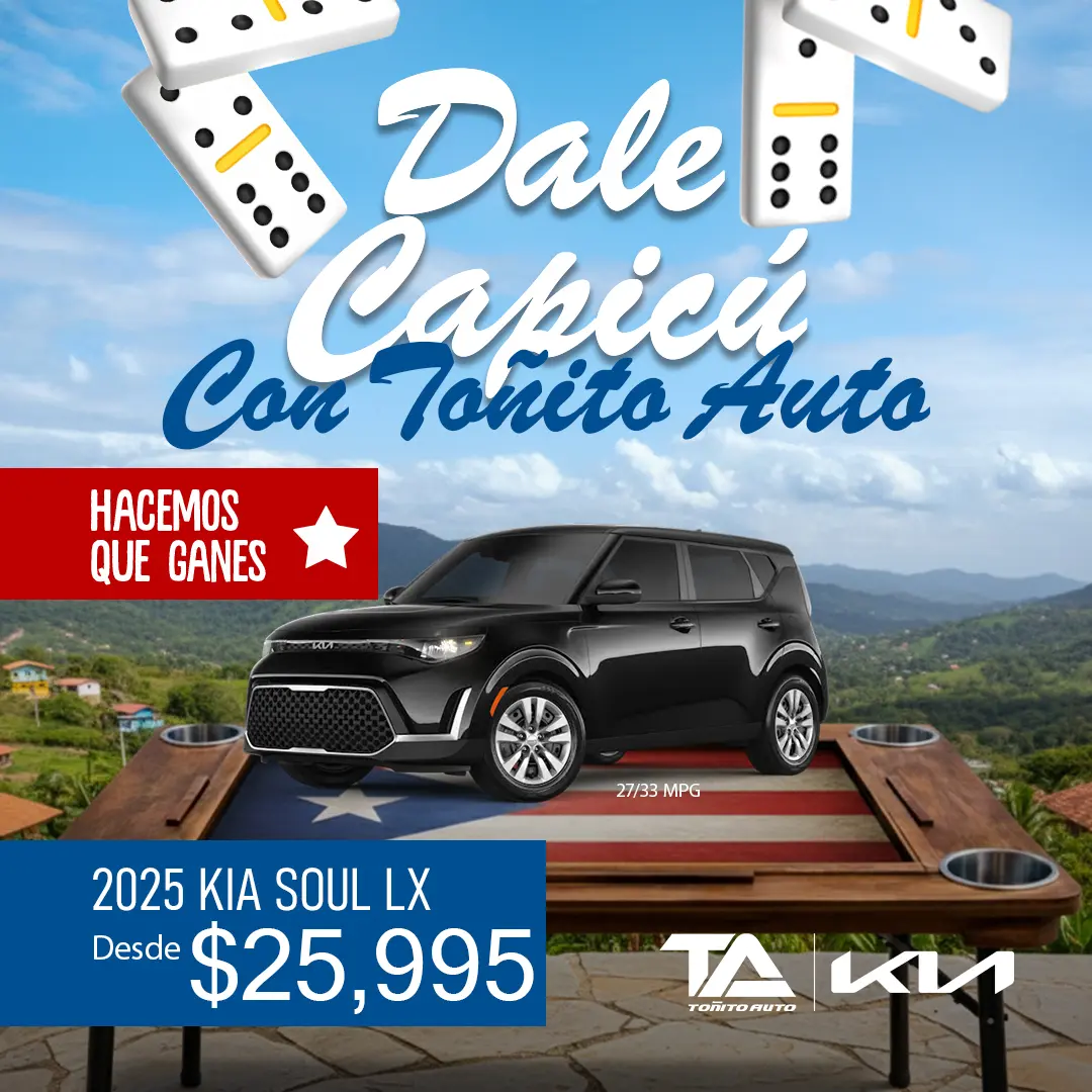 [1] Kia Soul LX 2025: Precio Especial de $25,995 sujeto a contrato de servicio. Pago puede variar según términos aprobados, pronto y cargos aplicables. Oferta válida mientras duren unidades. Restricciones aplican. Detalles en el concesionario. STOCK: S7945919 / S7945475